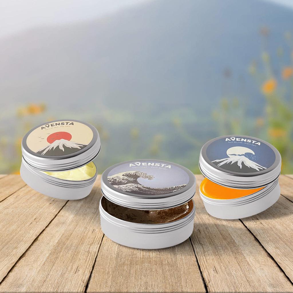Baume Jour 30 ml, Baume Nuit 30 ml, Exfoliant 50 g.